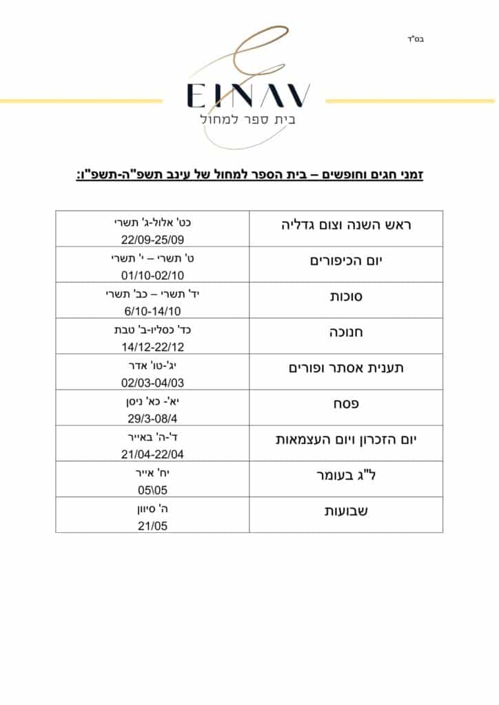 מערכת שעות ולוח חופשות